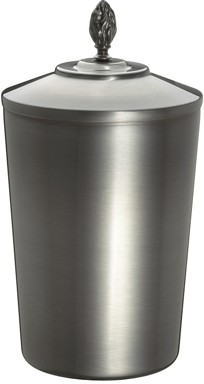 Urna tillverkad av järn. Järn är ett förgängligt material. Grå endast med fackla. Svensktillverkad.